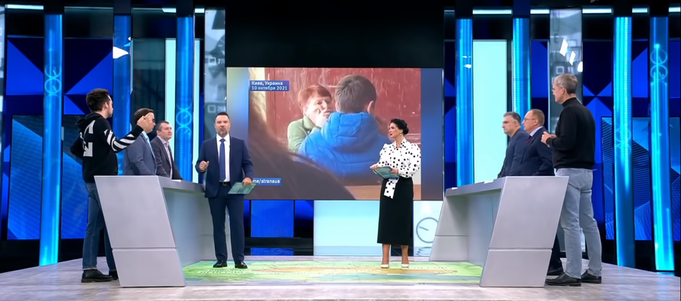 Поміж захлинанням жовчю та криками так звані експерти зачепили тему, яку самі означили як "розпалювання ненависті по-українськи". Зокрема рупори Кремля згадали про випадки, коли людям, які висловлювали зневагу до України та її державності, доводилось публічно вибачатись за свої слова. Опісля мова зайшла й про новий тренд української молоді з "фашистськими" піснями про Бандеру. Ведучі показали той самий ролик із київськими школярами, пообіцяли допомогти вчительці, що через цькування "малолітніх нацистів" залишилась без пенсії та коштів на проживання. Далі студія почала розпинатися про "один народ", "Київ – російське місто", а під час подібних нісенітниць на задньому фоні режисери крутили відео інших школярів, що приєдналися до флешмобу. Одними з них виявились львівські школярки.