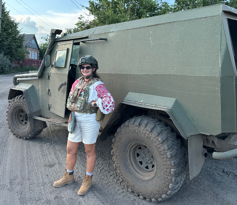 Христина Жук у вишиванці та шоломі. Фото: Христина Жук