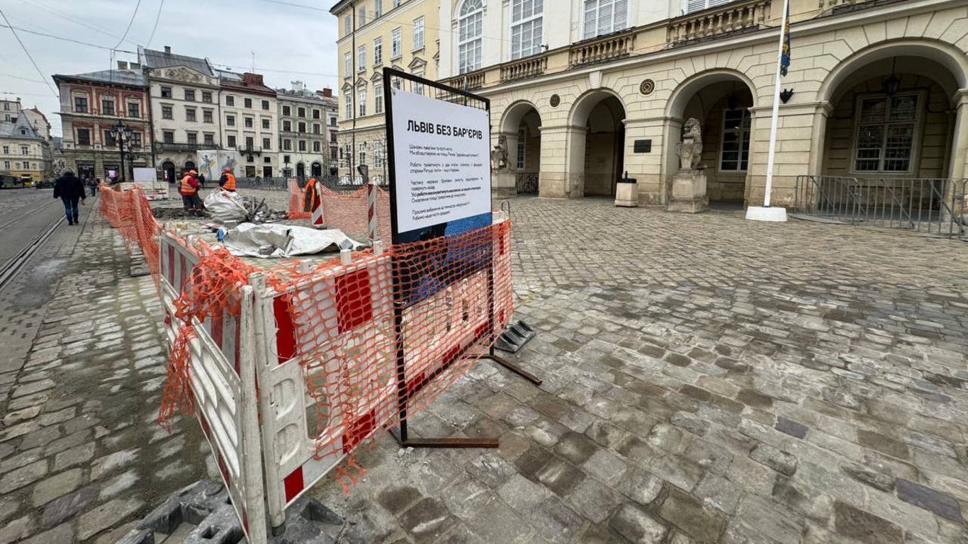 Перекладання бруківки на площі Ринок. Фото: Новини.LIVE