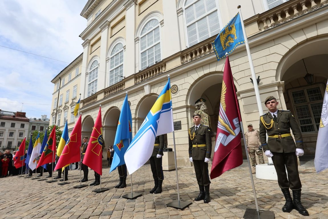 На головній площі міста — площі Ринок, майорять штандарти усіх військових та оборонних структур України.