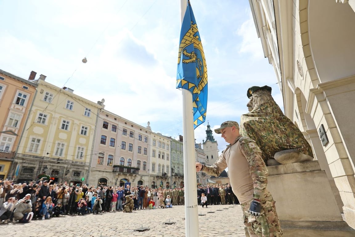 "Прапор Львова підняв незламний герой Роман Василюк. В жовтні він був поранений неподалік Бахмута. Вчора отримав біонічний протез руки у центрі #UNBROKEN, а сьогодні вже був з нами. Україна та Львів стоять завдяки незламності духу наших Захисників", — наголосив мер міста.