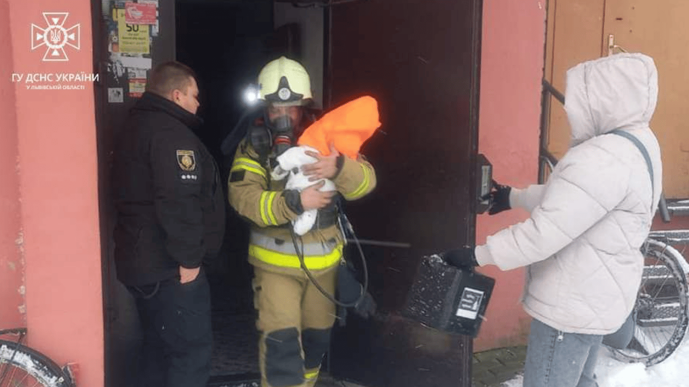 У селищі Добротвір Красноградського району Львівської області сталася пожежа у п'ятиповерховому житловому будинку. Під час ліквідації вогню рятувальники винесли з квартири немовля.