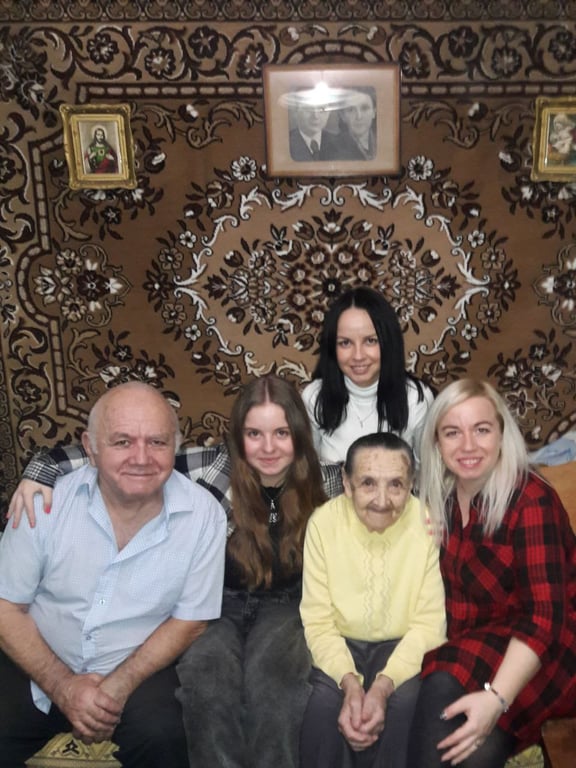 Евгения Тесленко с внучками, правнучкой и сыном. Фото: Виктория Самотий