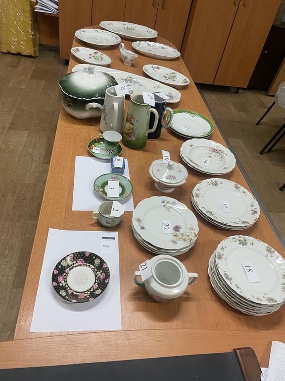 "Однако во время осмотра его авто работники таможни обнаружили в багажном отделении 38 единиц посуды (фаянс/фарфор), обозначенных с обратной стороны фирменным гербом и надписью "М.С. Кузнецов". По предварительным данным, обнаруженные чашки, тарелки и другие изделия могут составлять антикварную ценность, которая станет известна после проведения специальной экспертизы", — говорится в сообщении.