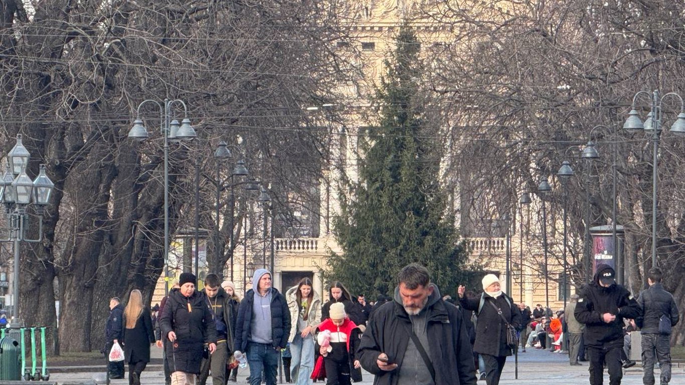 Люди перед оперным театром во Львове сегодня. Фото: Новини.LIVE