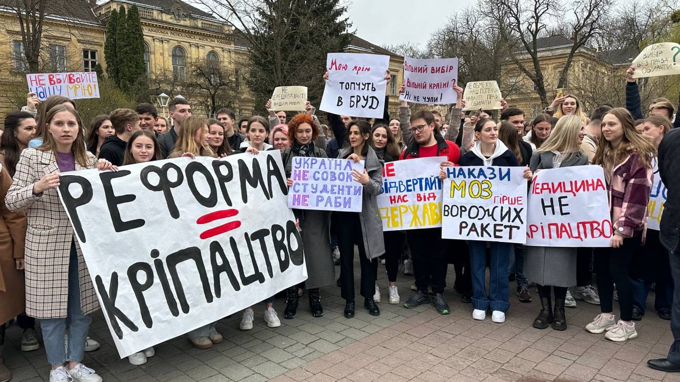 Во Львове студенты Львовского медицинского университета имени Даниила Галицкого вышли на протест из-за изменений распределения на интернатуру, которые планирует внедрить Минздрав.