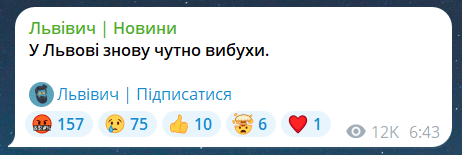Скриншот повідомлення з телеграм-каналу "Львівич | Новини"