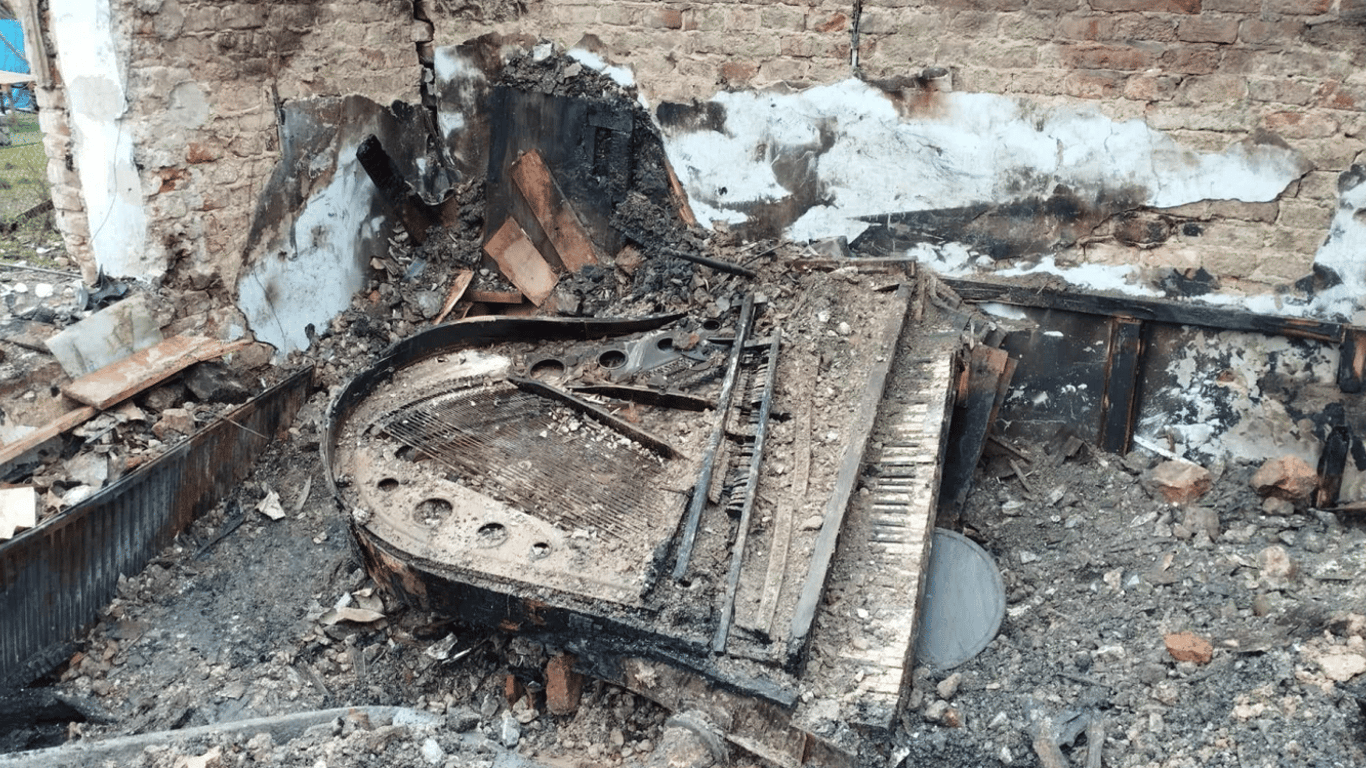 У повідомленні уточнюється, що співробітники музею змогли дістати з-під уламків фортепіано, яке зазнало руйнувань і вигоріло, але збереглося як свідчення агресії з боку Росії.